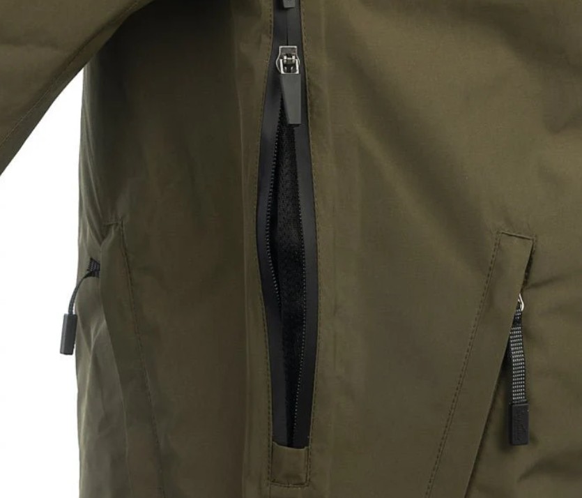 I armhulen er jakken forsynet med ventilations lynlås, og indvendig med mech for ekstra ventilation.