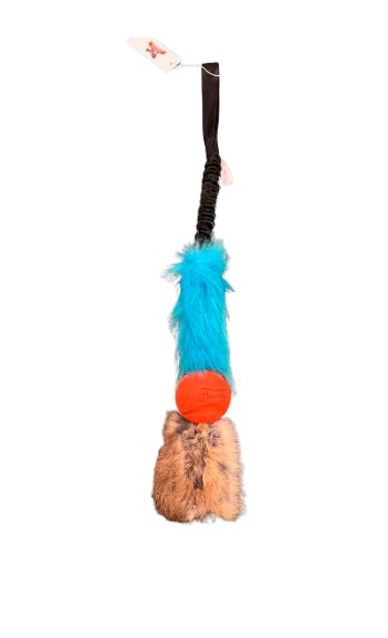 Dette eksklusive belønningslegetøj er designet til at gøre træning og leg endnu sjovere – både for dig og din hund. Legetøjet kombinerer et elastisk håndtag med en fluffy kampdel i kort, tyk luksus fuskpels, en Chuckit Fetch-bold samt to bløde kaninhaler, som de fleste hunde har svært ved at modstå.