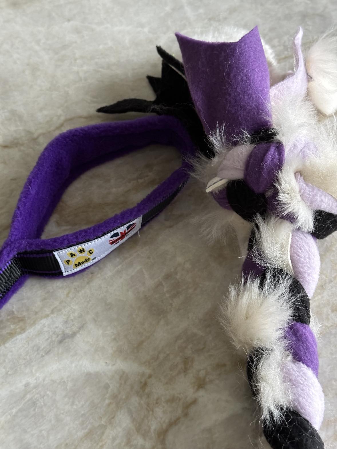 I modsætning til mange andre fleecetove, på markedet med pels, er pelsen på Paws Made ikke kun flettet ind, men også syet fast på fleecen for at maksimere holdbarheden.