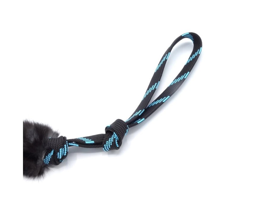 Det korte legetøj med kaninpels kan både bruges til kastebelønning eller trækkeleg. Håndtaget i kraftigt blød polyester kan varierer i længden ved at løsne knuderne. Legetøjet kan nemt haves i lommen på din hundetræningsvest/jakke under din træning.