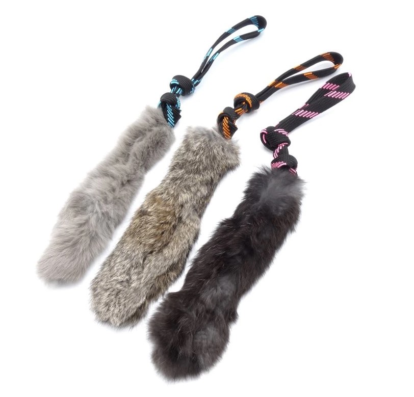 Det korte legetøj med kaninpels kan både bruges til kastebelønning eller trækkeleg. Håndtaget i kraftigt blød polyester kan varierer i længden ved at løsne knuderne. Legetøjet kan nemt haves i lommen på din hundetræningsvest/jakke under din træning.