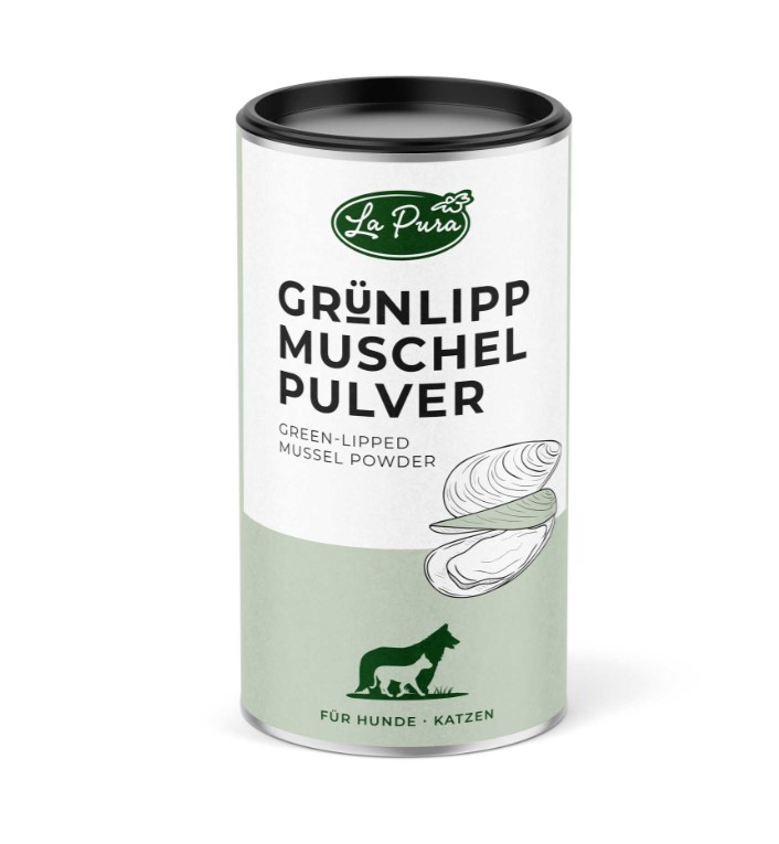 Dosering: Det anbefales, at La Pura grønt muslingpulver blandes med madrationen. Afhængigt af kropsvægt (kropsvægt) får dyr op til 10 kg kropsvægt 0,5 g en gang dagligt; op til 20 kg kropsvægt 1,0 g; op til 30 kg kropsvægt 1,5 g; fra 40 kg kropsvægt 2,0 g.