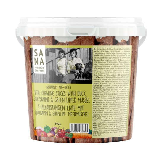 SANA DOGs Vital Dental Tyggestænger produceres i deres egen fabrik uden korn, soja, farvestoffer, konserveringsmidler eller fyldstoffer.