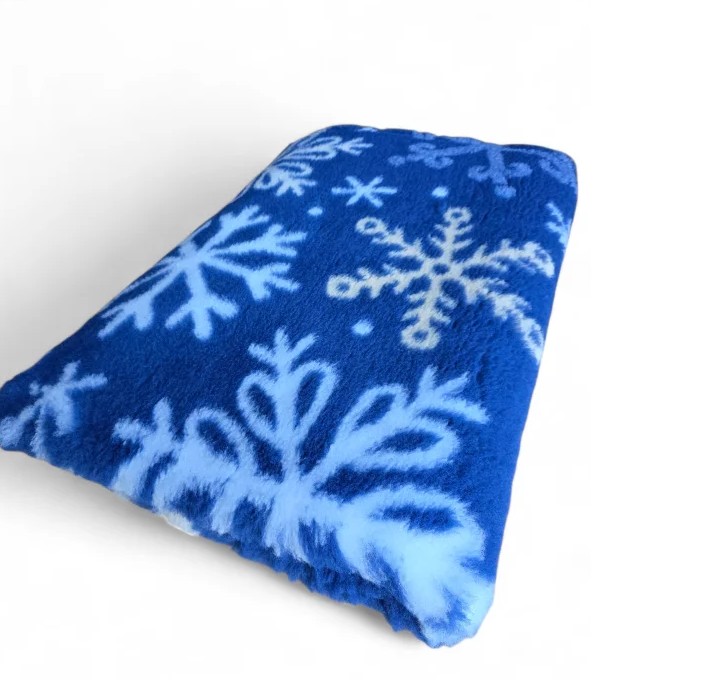 Super skønt Vetbed i blå med snefnug. Vetbed tæppet er i den kraftigste kvalitet på det danske marked (30mm)